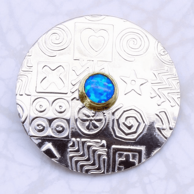 Round silver brooch, contemporary, sterling silver, pink corundum gemstone, stone choice